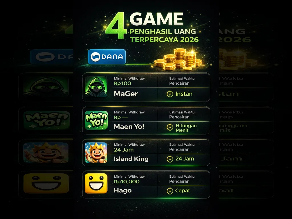 MaGer, Maen Yo!, Island King, dan Hago termasuk aplikasi yang memiliki rekam jejak pembayaran yang cukup baik di tahun 2026.