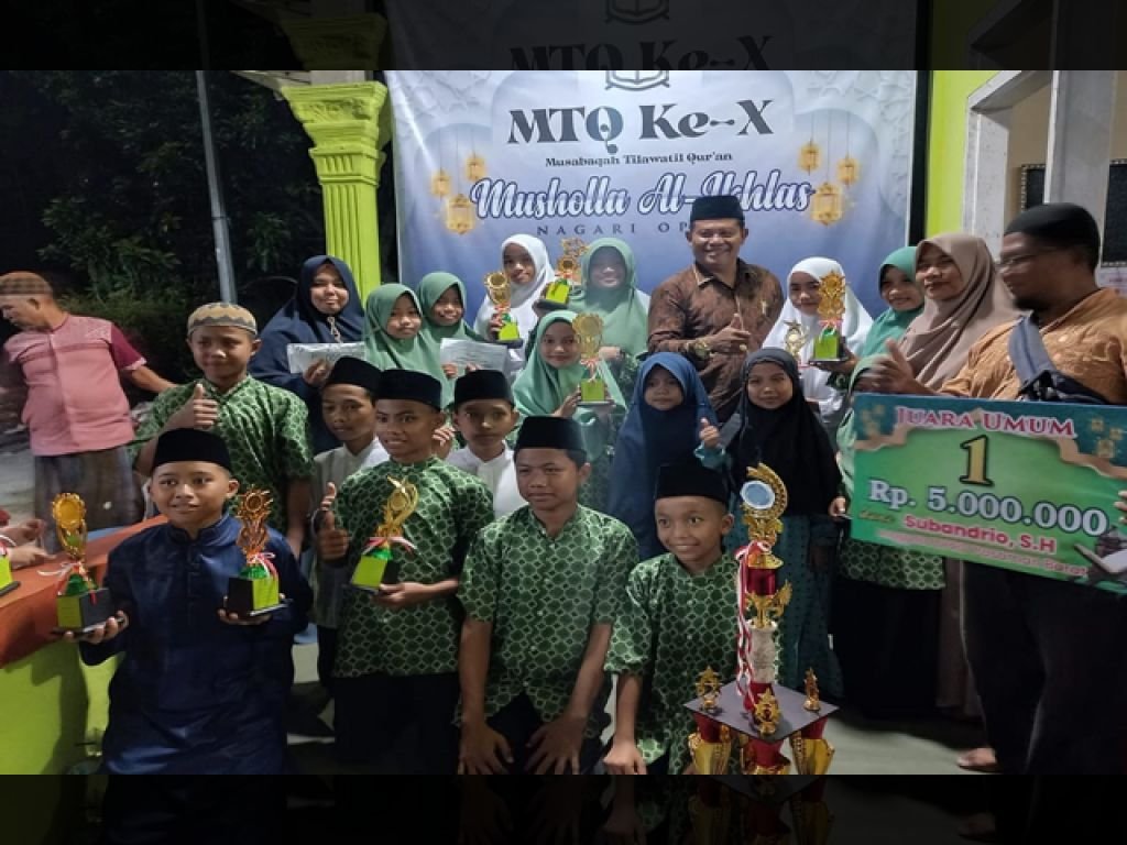 PASAMAN BARAT | Kabasumbar.net - Sebagai bentuk dukungan dan pembinaan serta motivasi, anggota DPRD Pasaman Barat Komisi III Subandrio memberikan reward penghargaan kepada Juara Umum I, II dan III MTQ X Tahun 2023 tingkat SD dan SMP se Kenagarian Ophir, Sabtu (8/4/2023) malam.