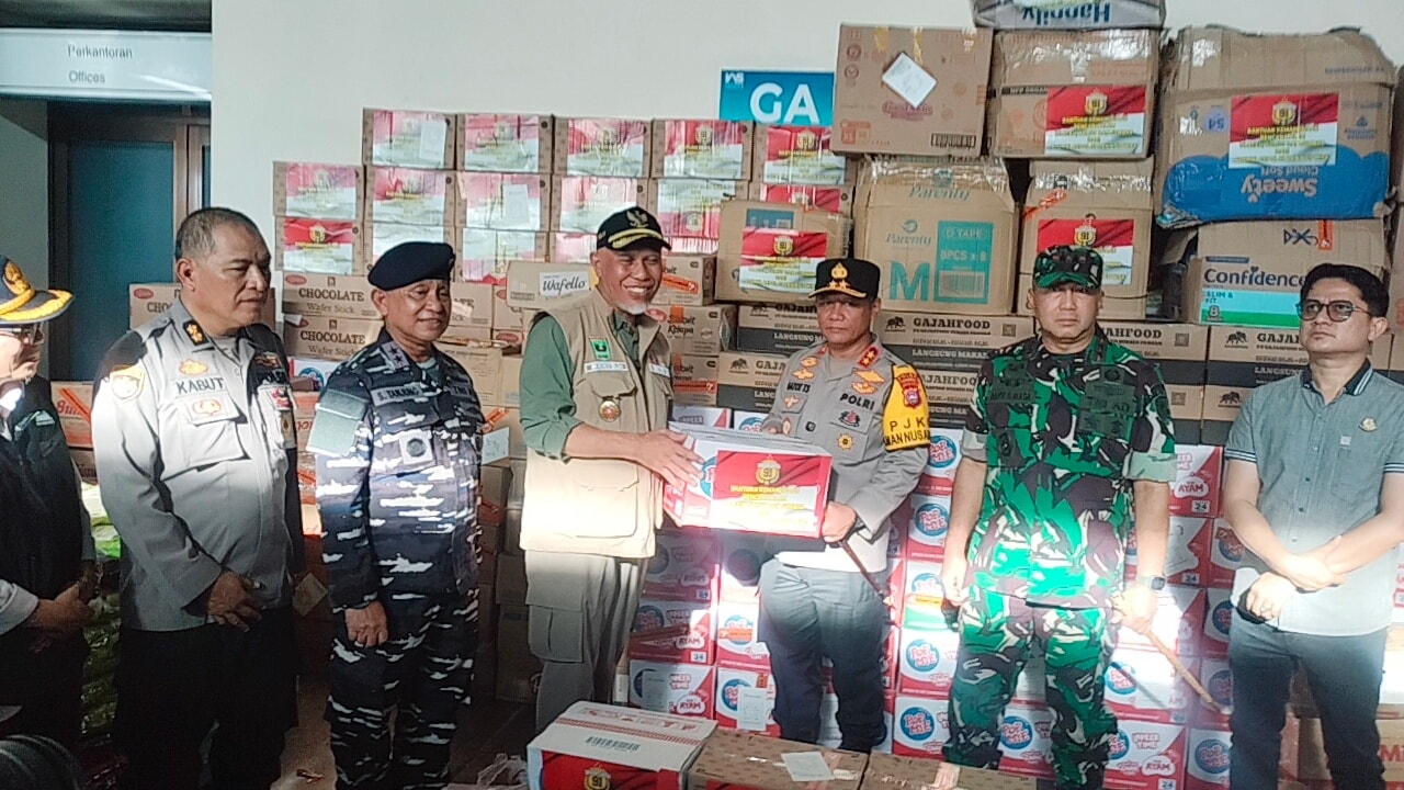 Gubernur Mahyeldi mengatakan, bantuan yang datang berisi berbagai kebutuhan mendesak masyarakat, terutama bahan pangan.