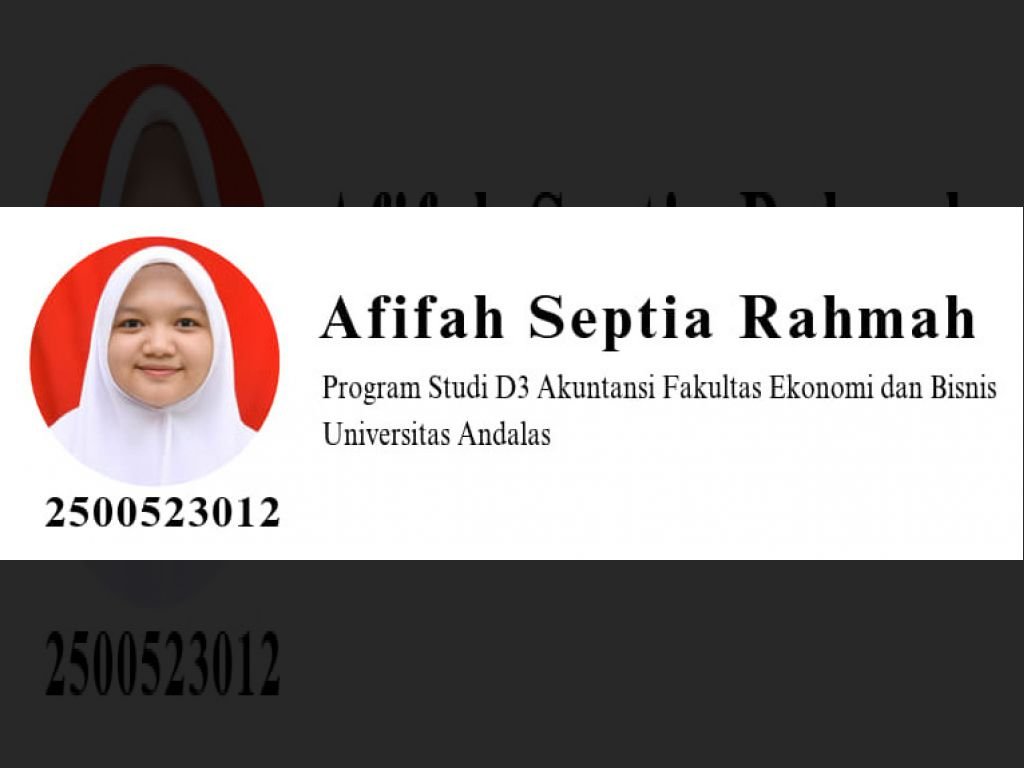 Oleh: Afifah Septia Rahmah (2500523012), Program Studi D3 Akuntansi Fakultas Ekonomi dan Bisnis, Universitas Andalas.