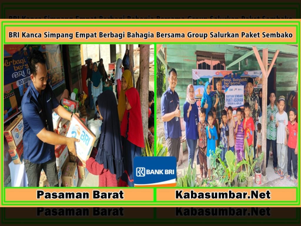Pasaman Barat | Kabasumbar.net - BRI Kanca Simpang Empat Berbagi Bahagia Bersama Group Salurkan Paket Sembako, hal ini dilaksanakan dalam memaknai bulan suci Ramadan 1444 H/2023 M.