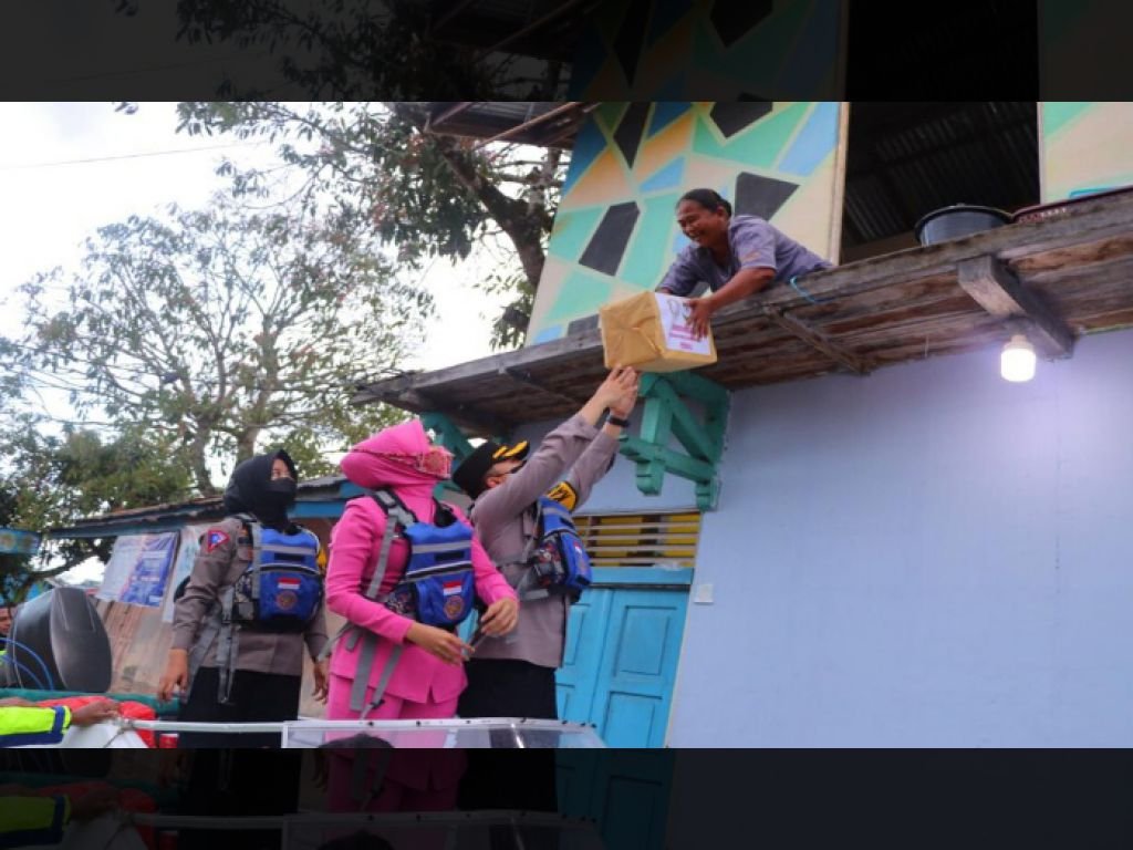 Distribusi Makanan kepada Warga, Kapolres Juga Lakukan Monitoring Banjir