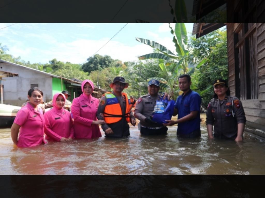 Kapolres AKBP Yani Permana menyampaikan, 100 paket Sembako yang diserahkan kepada warga korban banjir tersebut merupakan bantuan dari Ibu Ketua Umum Bhayangkari Pusat dan Ketua Bhyangkari Daerah Kalbar.