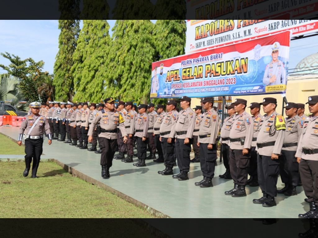 Pasaman Barat - Kabasumbar.net: Kapolres Pasbar pimpin apel gelar pasukan Operasi Keselamatan Lalu Lintas Singgalang Tahun 2023, pada Selasa (07/02/2023) di halaman Polres Pasbar dengan tema Terciptanya kamseltibcarlantas menjelang Idul Fitri 1444 H tahun 2023 di wilayah hukum Polres Pasaman Barat.