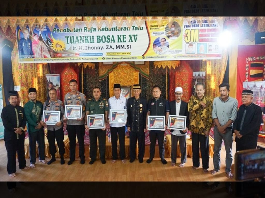 Pasaman Barat | Kaba Sumbar - Kerapatan Adat Nagari (KAN) Talu melalui Tuanku Bosa XV Ir. H. Jhonny, Z.A.MM.SI sebagai Ketua KAN Talu dan Pucuak Adat Kabuntaran Talu, menyerahkan penghargaan kepada sembilan instansi dan lembaga masyarakat yang telah berpartisipasi aktif selama tanggap darurat bencana alam gempa bumi Pasaman Barat pada (25/2) lalu. Kegiatan digelar di Istana Tuanku Bosa Rumah Gadang Koto Dalam, Nagari Talu, Kecamatan Talamau, Kamis (26/5).