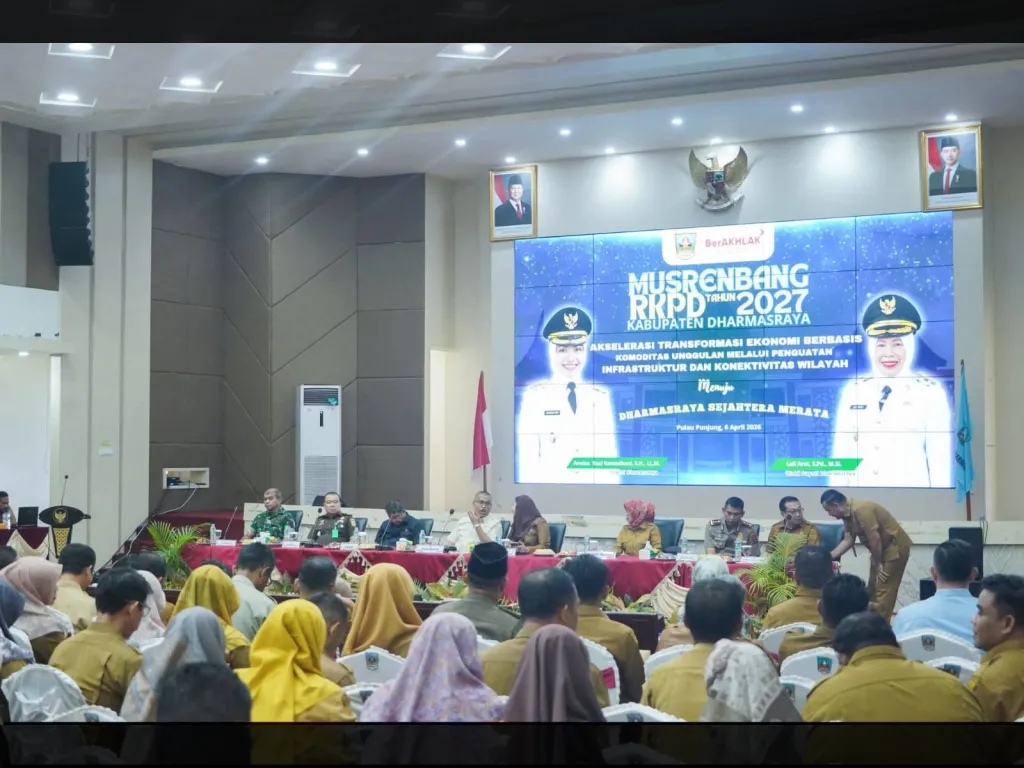 KabaSumbar - Kinerja pembangunan Kabupaten Dharmasraya mendapat apresiasi dari Pemerintah Provinsi (Pemprov) Sumatera Barat. Pernyataan itu diungkapkan Asisten Administrasi Umum Setdaprov, Medi Iswandi, ketika menghadiri Musyawarah Perencanaan Pembangunan (Musrenbang) RKPD Tahun 2027, Senin (6/4/2026) di Pulau Punjung.