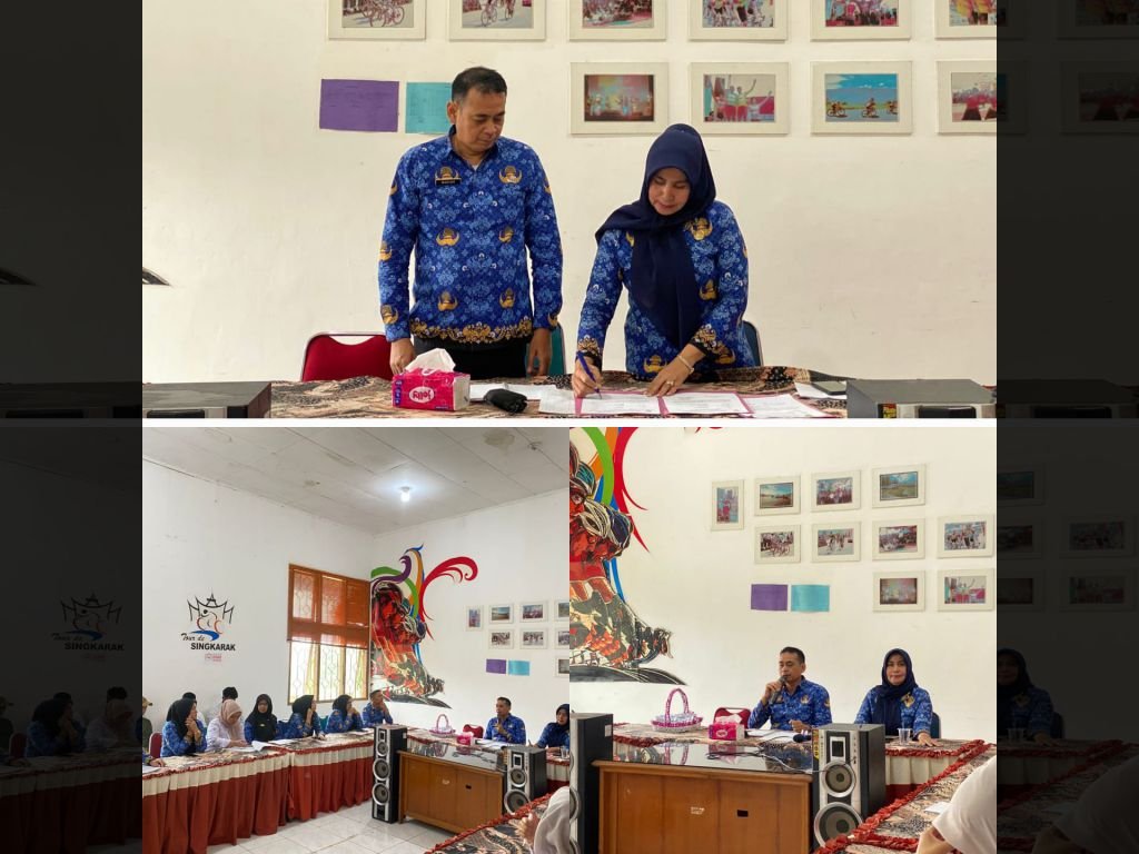 Mengawali rapat staf ini, Marcos Sophan juga melakukan serah terima jabatan (Sertijab) dari Plt. Kepala Disparbud yang juga Sekretaris drg. Aida Herlina disaksikan seluruh aparatur Dinas setempat.