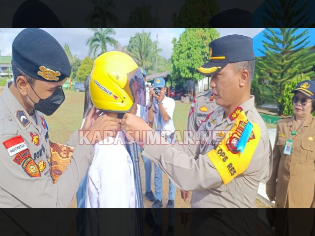 Pada kesempatan ini, Kapolres Bengkayang juga menyerahkan Helm sebagai simbolis kepada pelajar SMA 2 Bengkayang sebagai wujud Pelopor Keselamatan Berlalu Lintas dan inovasi Operasi Zebra Kapuas-2022.