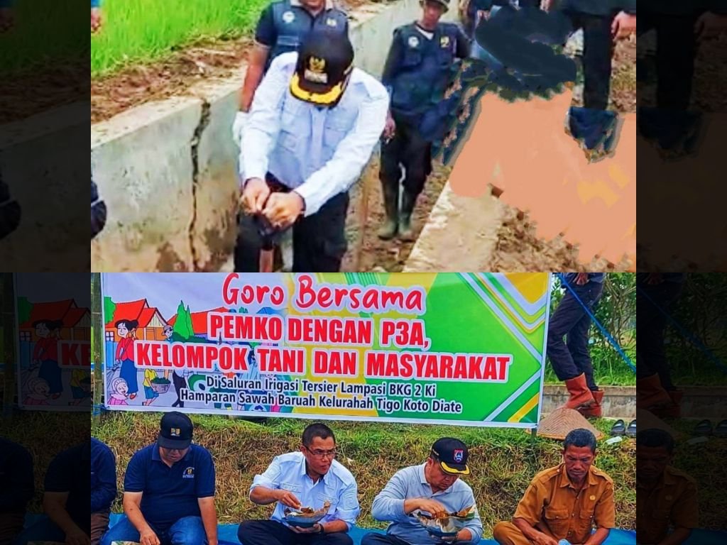 Kendati terlihat datang dengan kostum baju putih dan bercelana hitam, Rida Ananda ikut berbaur bersama petani lakukan pembersihan saluran irigasi Tersier Lampasi BKG 2 ki pada hamparan sawah Baruah Kelurahan Tigo Koto Dibaruah.Sembari, sambil cicipi hidangan yang telah disiapkan petani di atas hamparan sawah Baruah tersebut, Pj. Wako Rida Ananda mengatakan, goro yang dilaksanakan bersama tersebut tidak lain adalah agar bisa meningkatkan ketahanan pangan masyarakat.