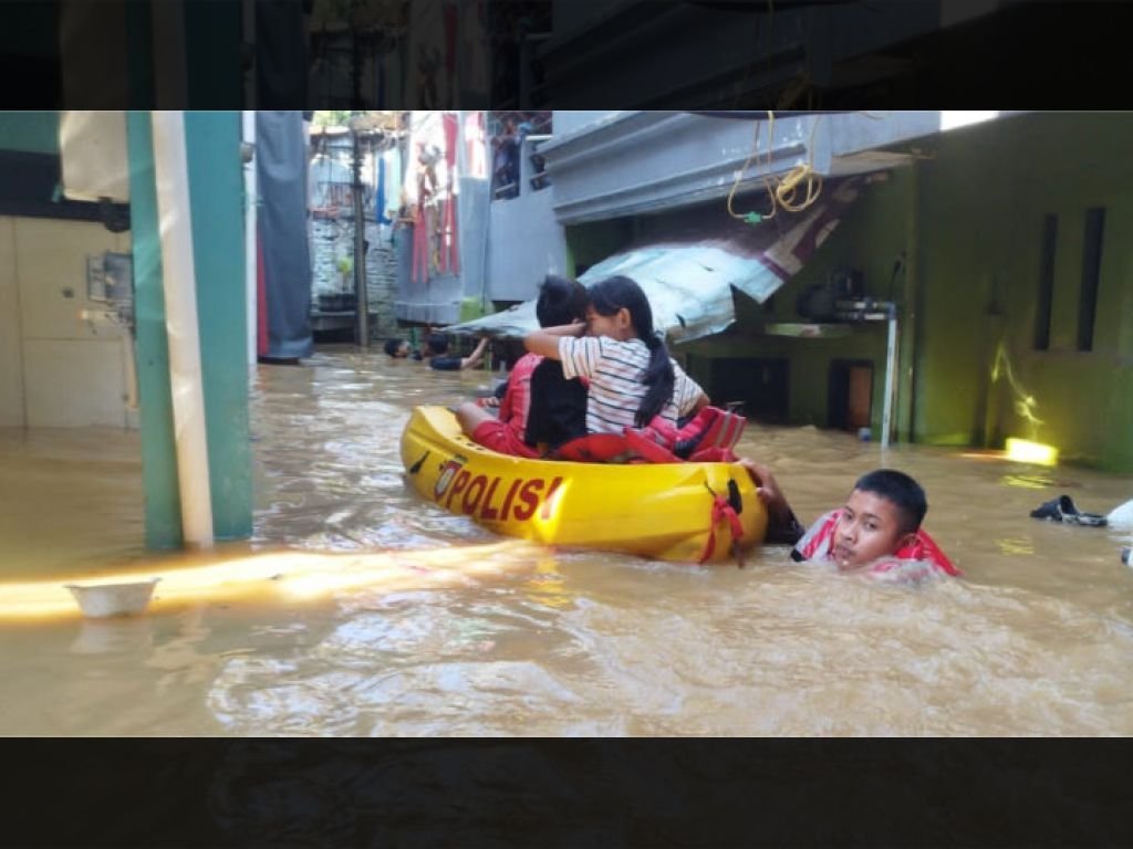 Polisi Bantu Evakuasi 71 Warga Kebon Pala Jakarta Timur Akibat Banjir Kali Ciliwung