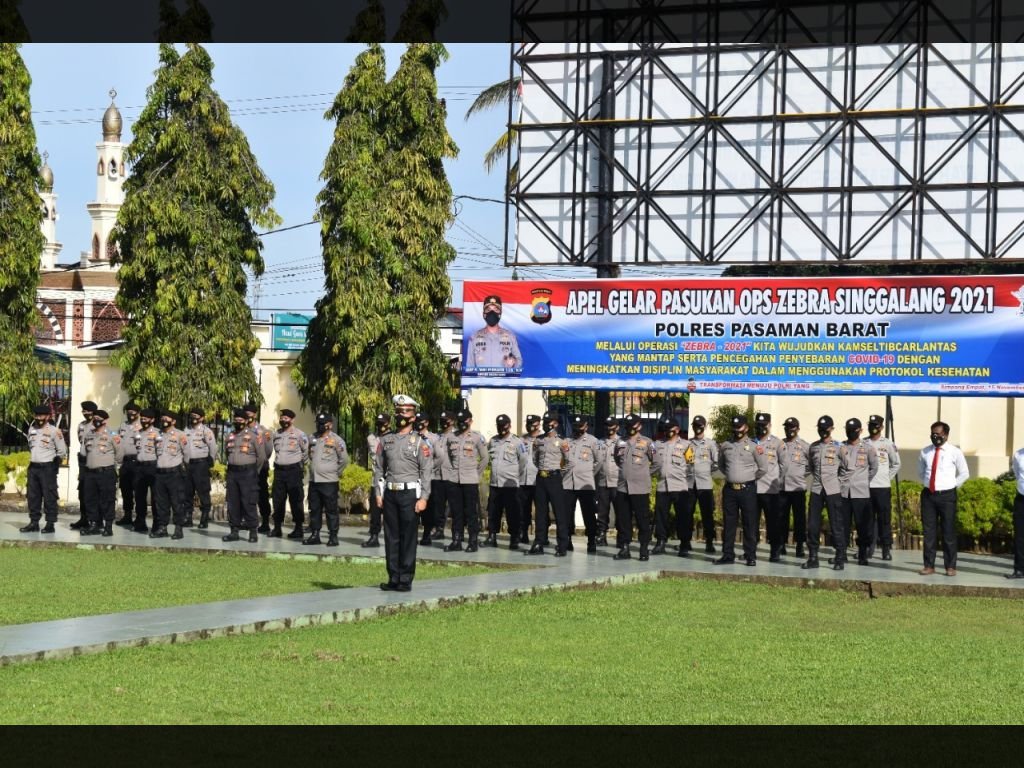 Pasaman Barat | Kaba Sumbar - Kepolisian Resor Pasaman Barat, Sumatera Barat melaksanakan gelar pasukan Operasi Zebra Singgalang 2021 sambari memberikan penghargaan kepada personil yang banyak membawa masyarakat untuk divaksin COVID-19, Senin1 (15/11).