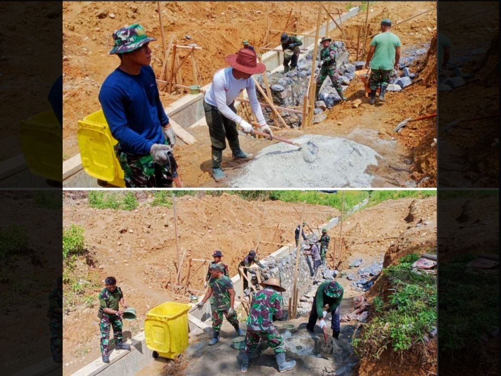 Mereka dengan semangat tinggi terus bahu-membahu dengan masyarakat setempat tetap kerja, karena untuk menunjang pelaksanaan kegiatan TMMD/N nantinya.