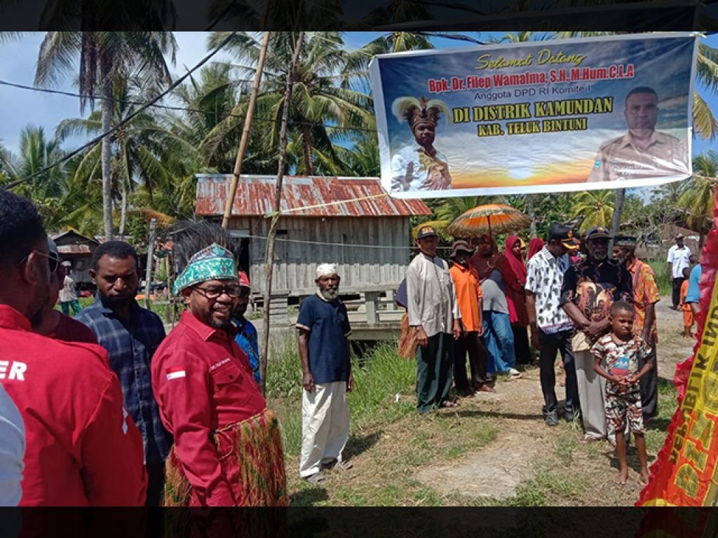 Senator Papua Barat Dr. Filep Wamafma melakukan kunjungan kerja (kunker) di Distrik Kamundan, Kabupaten Teluk Bintuni, Rabu (19/4/2023), dengan menyerap aspirasi masyarakat setempat.
