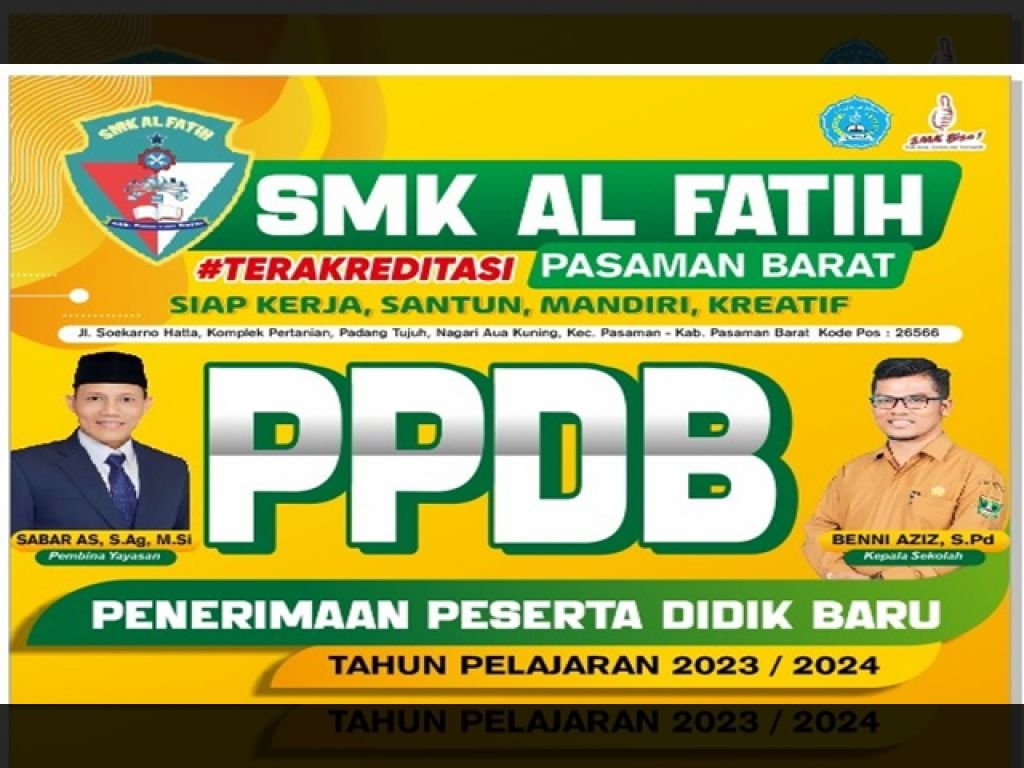 SMK Al Fatih Pasbar Buka Pendaftaran Penerimaan Peserta Didik Baru TP. 2023-2024 PPDB