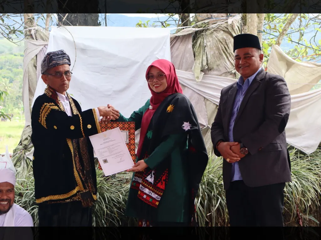 Pengakuan itu dibuktikan dengan penyerahan Sertifikat Kekayaan Intelektual Komunnal (KIK) melalui Kepala Dinas Pariwisata dan Kebudayaan Kabupaten Solok diwakili Kepala Bidang Kebudayaan, Lesmi, dalam suasana ritual adat Plakat Panjang, Kamis (9/4/ 2026) di Surian.