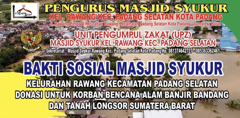 KabaSumbar – Masjid Syukur bersama Unit Pengumpul Zakat (UPZ) Masjid Syukur menyalurkan donasi tahap pertama kepada warga terdampak banjir bandang di RT 001 RW 004, Kelurahan Lambung Bukik, Kecamatan Pauh, pada Ahad (7/12/2025). Bantuan tersebut merupakan hasil donasi jamaah dan masyarakat yang disalurkan melalui Masjid Syukur.